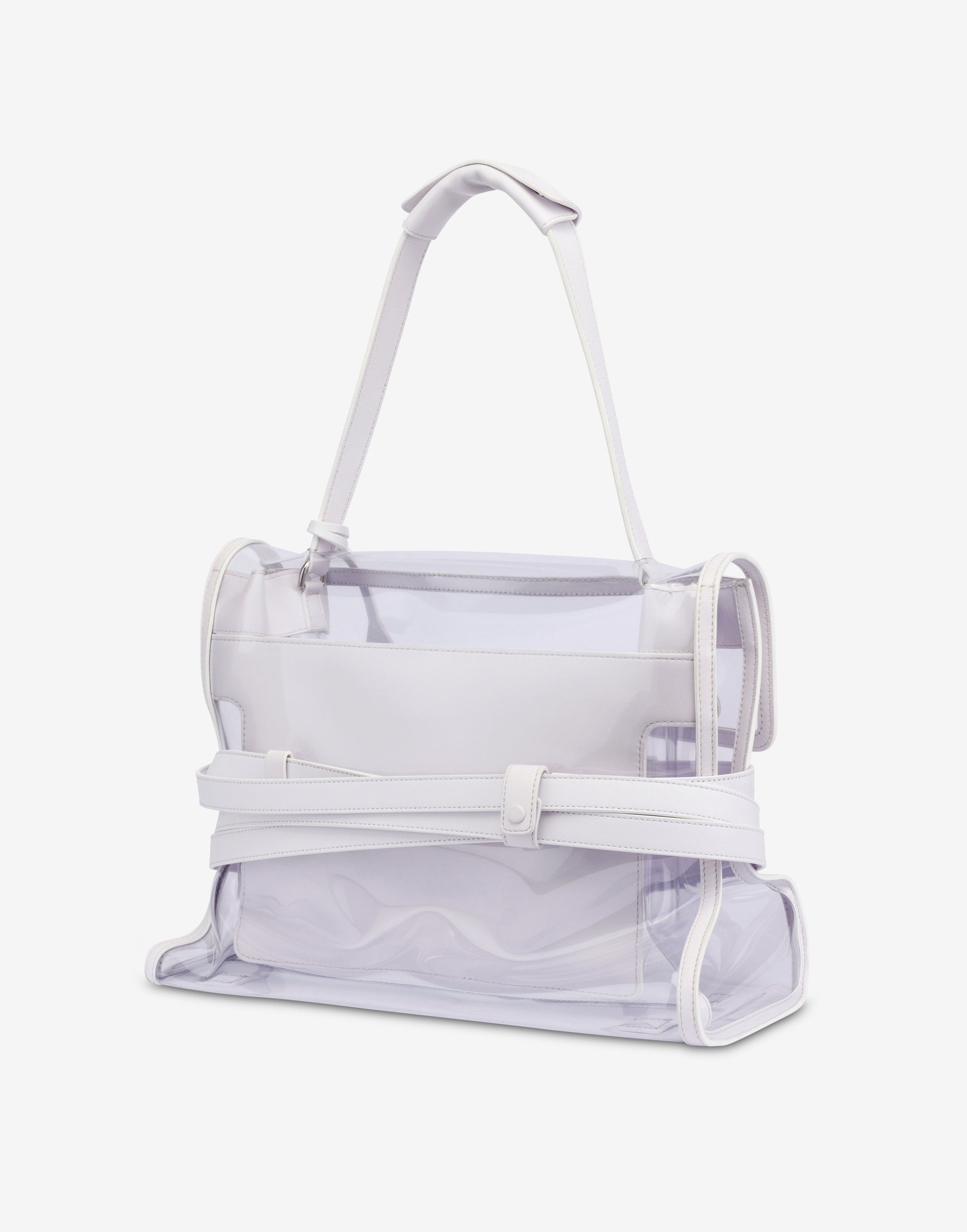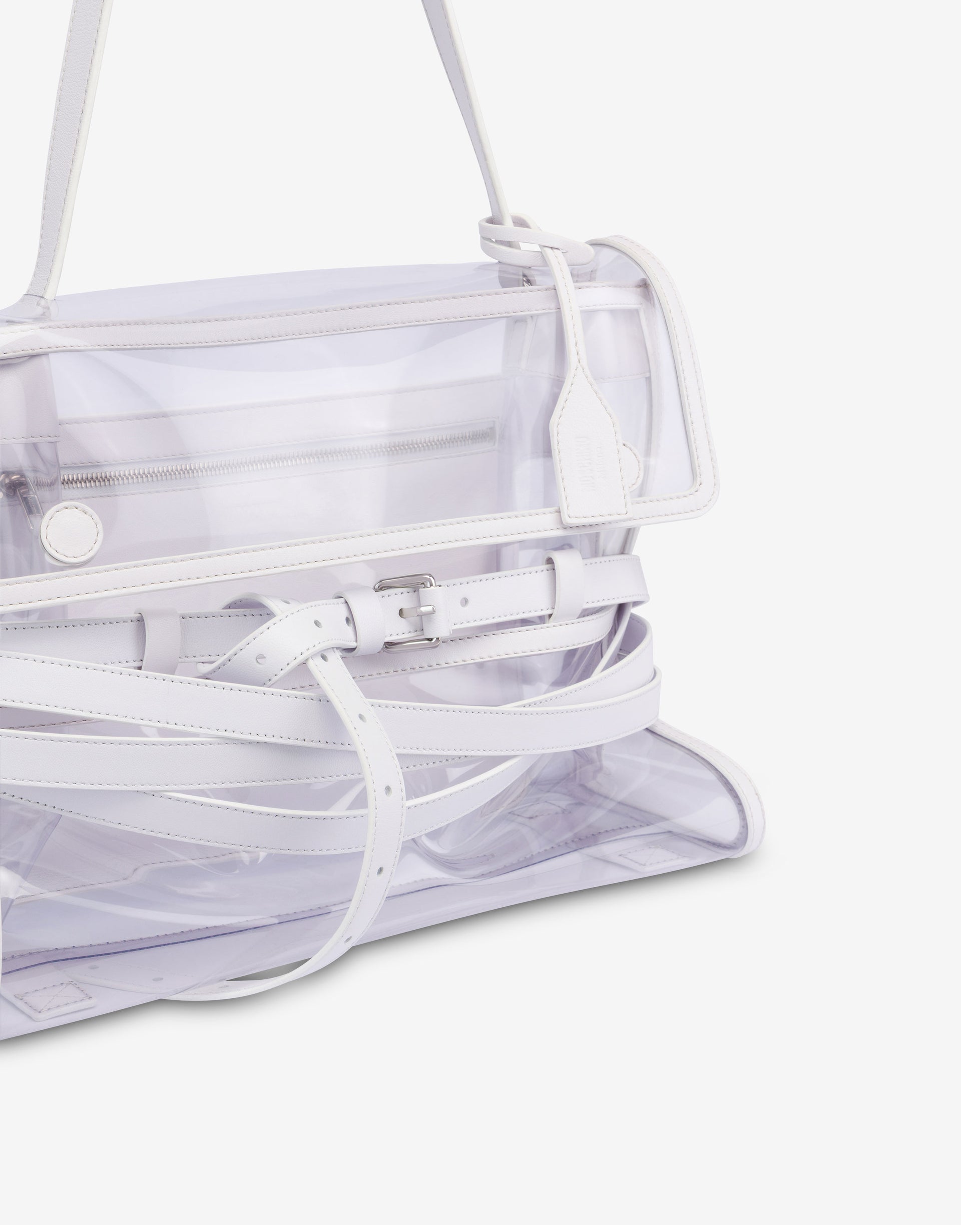 The Resort 2026 collection presents the transparent PVC medium shoulder bag with tassel details, with a lightweight construction. Distinctive feature is the decorative, fully removable belt that hugs the body of the bag.