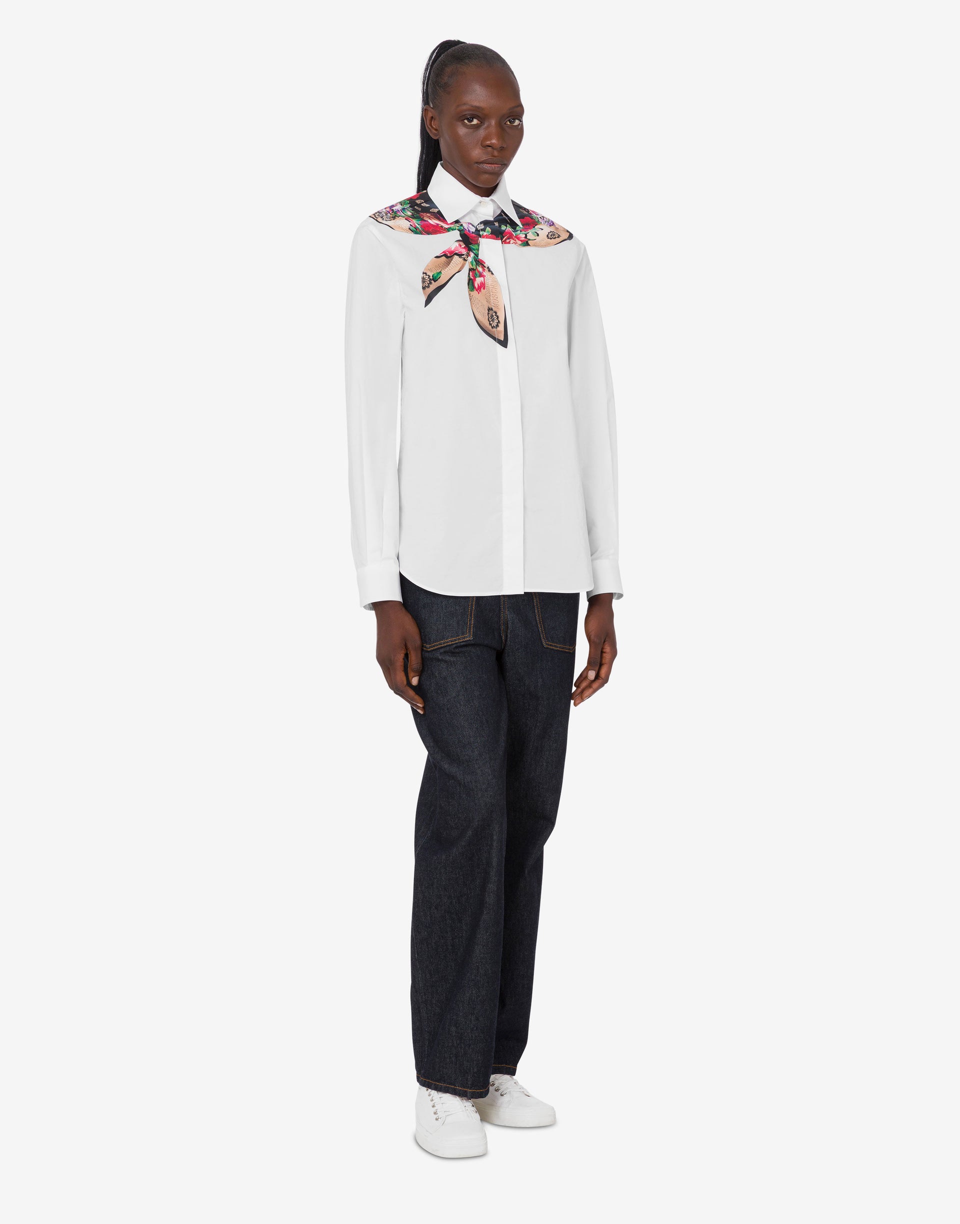 印花弹力棉府绸衬衫 白色 Moschino 0