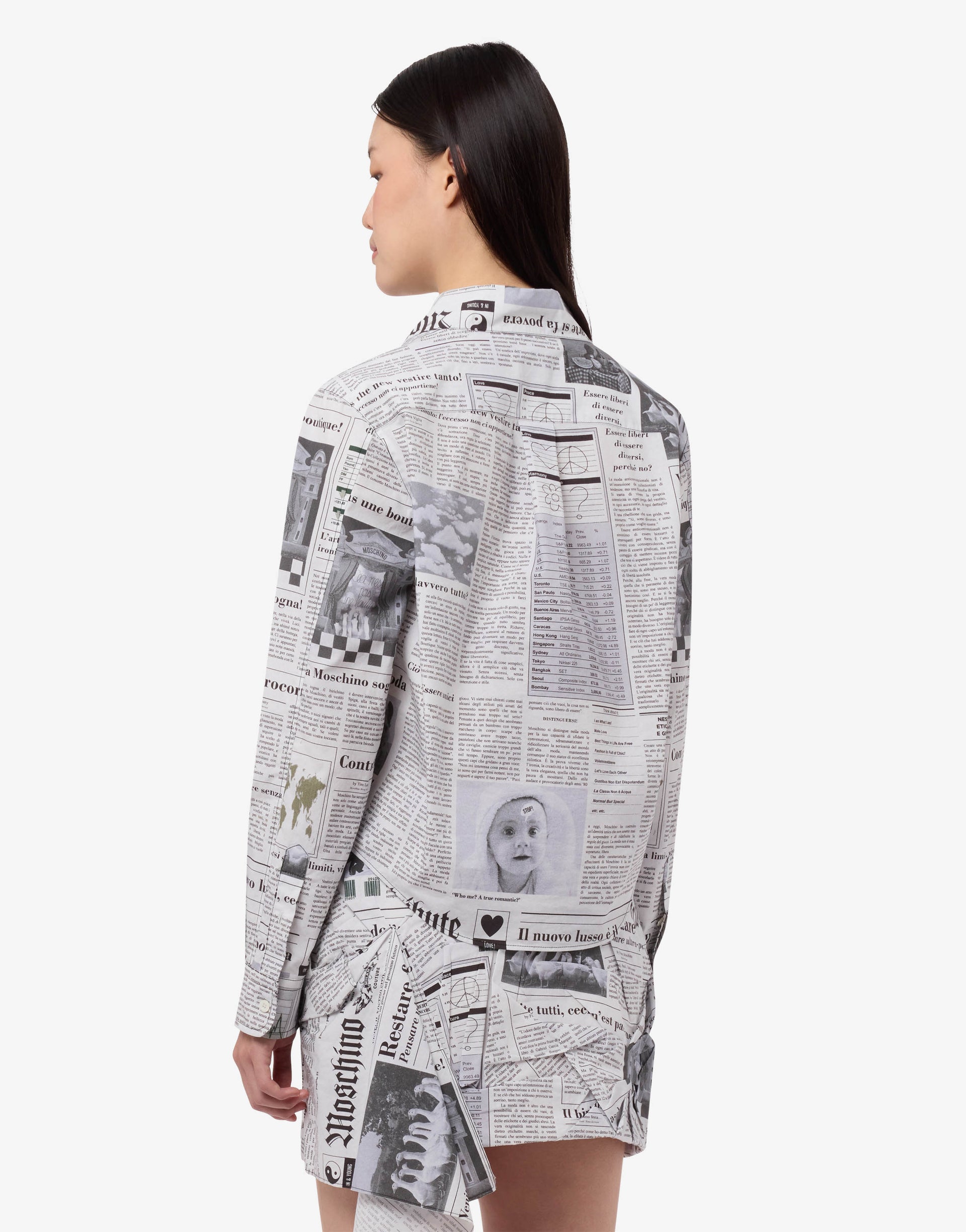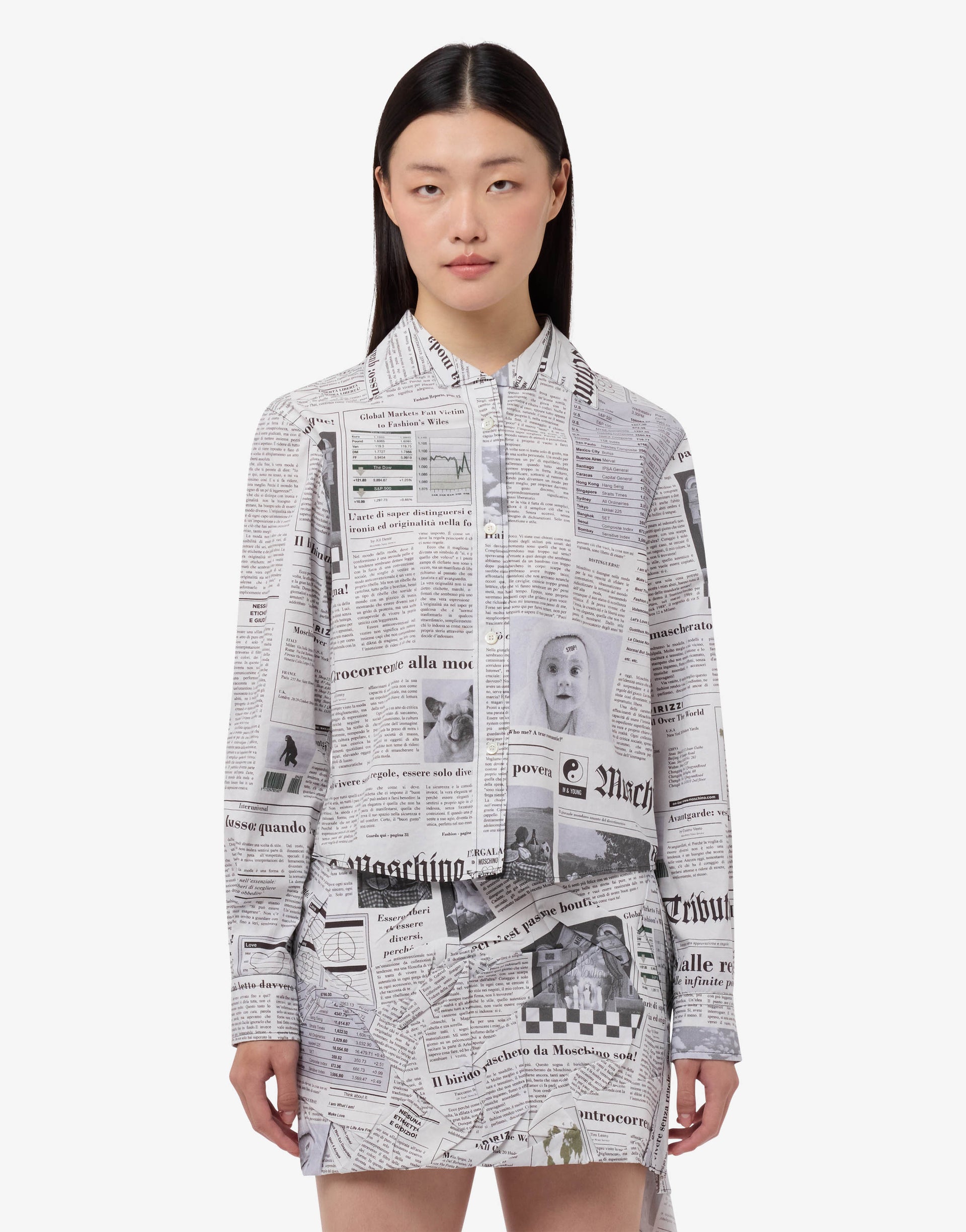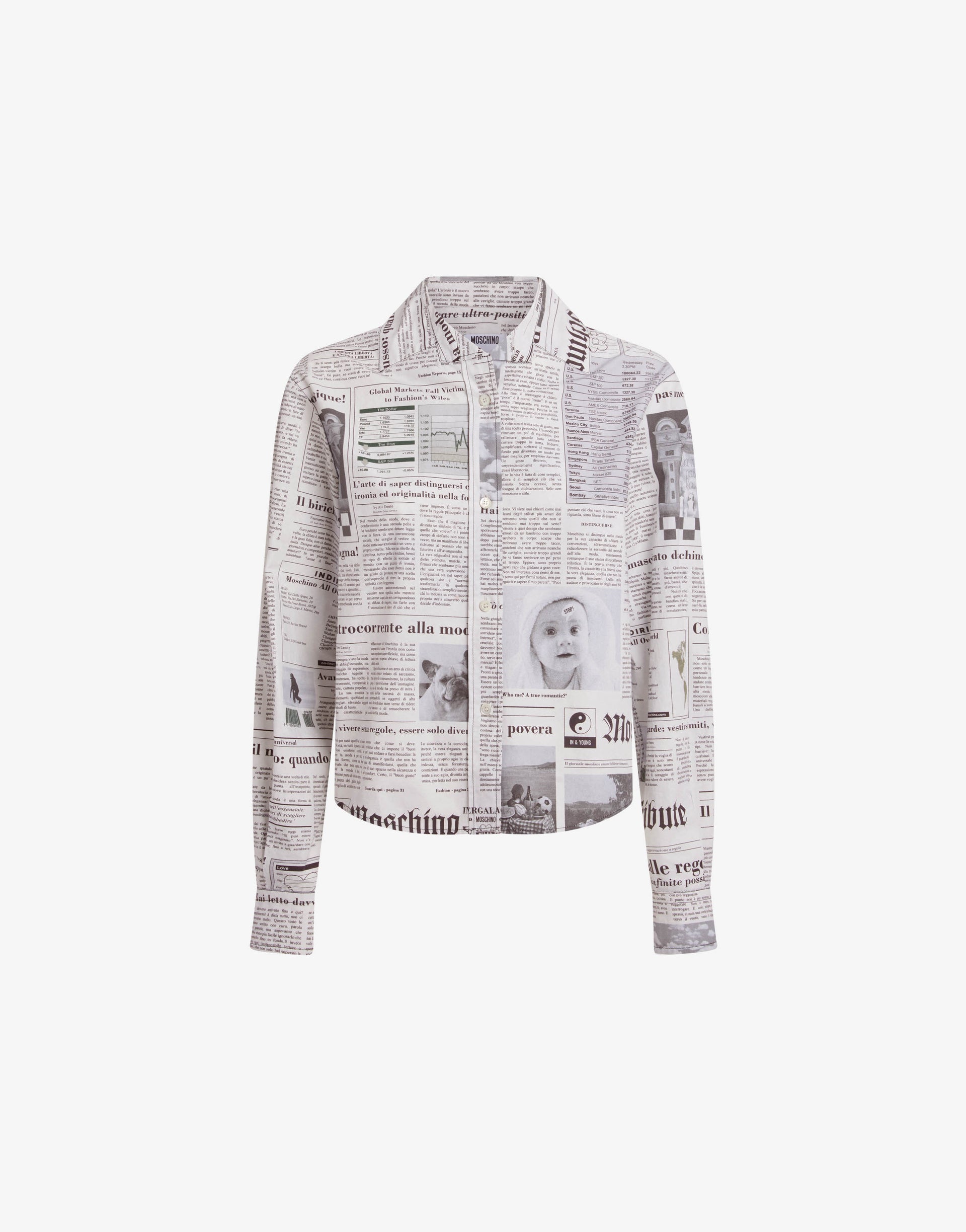 2026春夏系列推出棉质平纹布衬衫,饰以满版报纸印花。