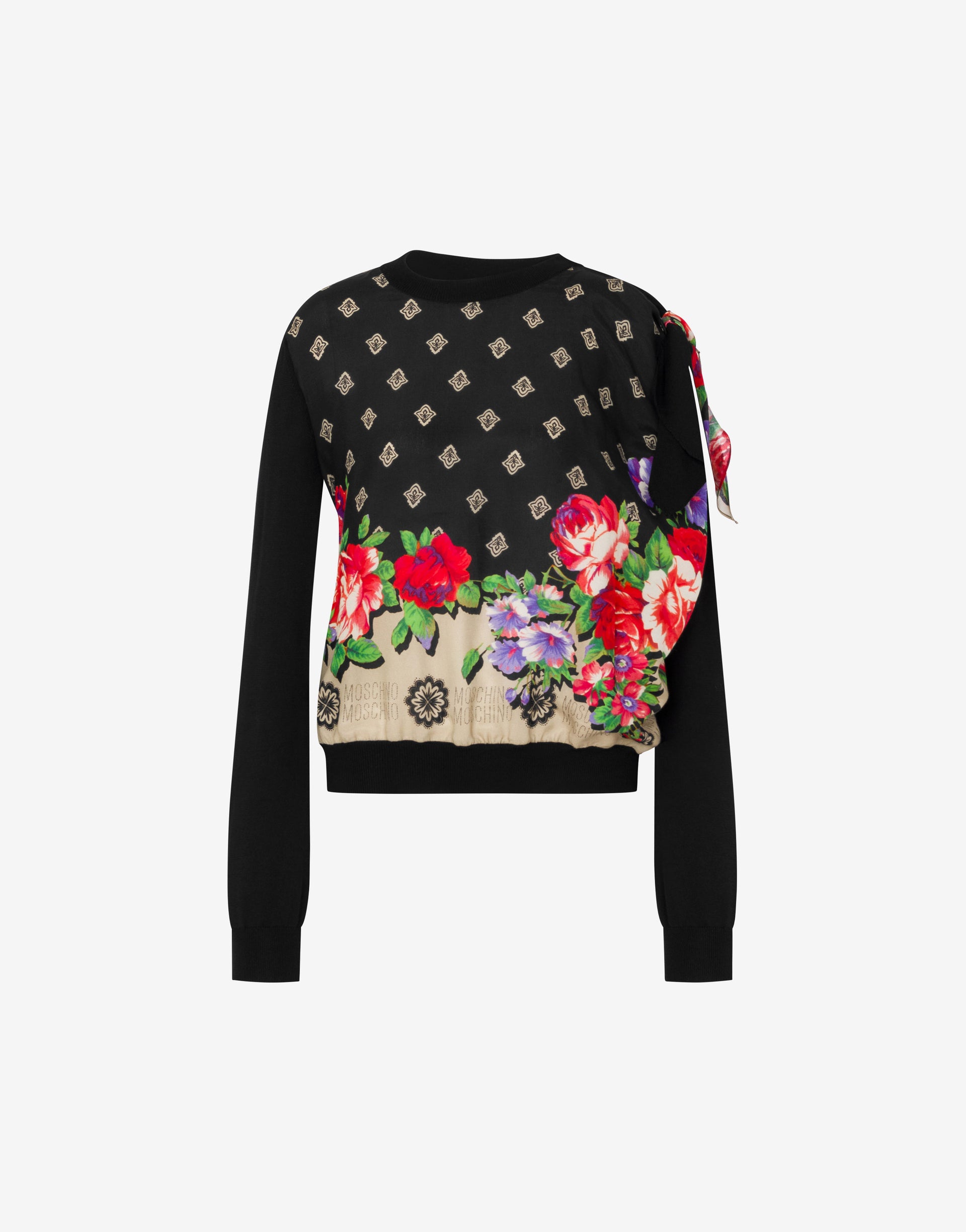 印花纯棉与真丝混纺套头衫 黑色 Moschino 0