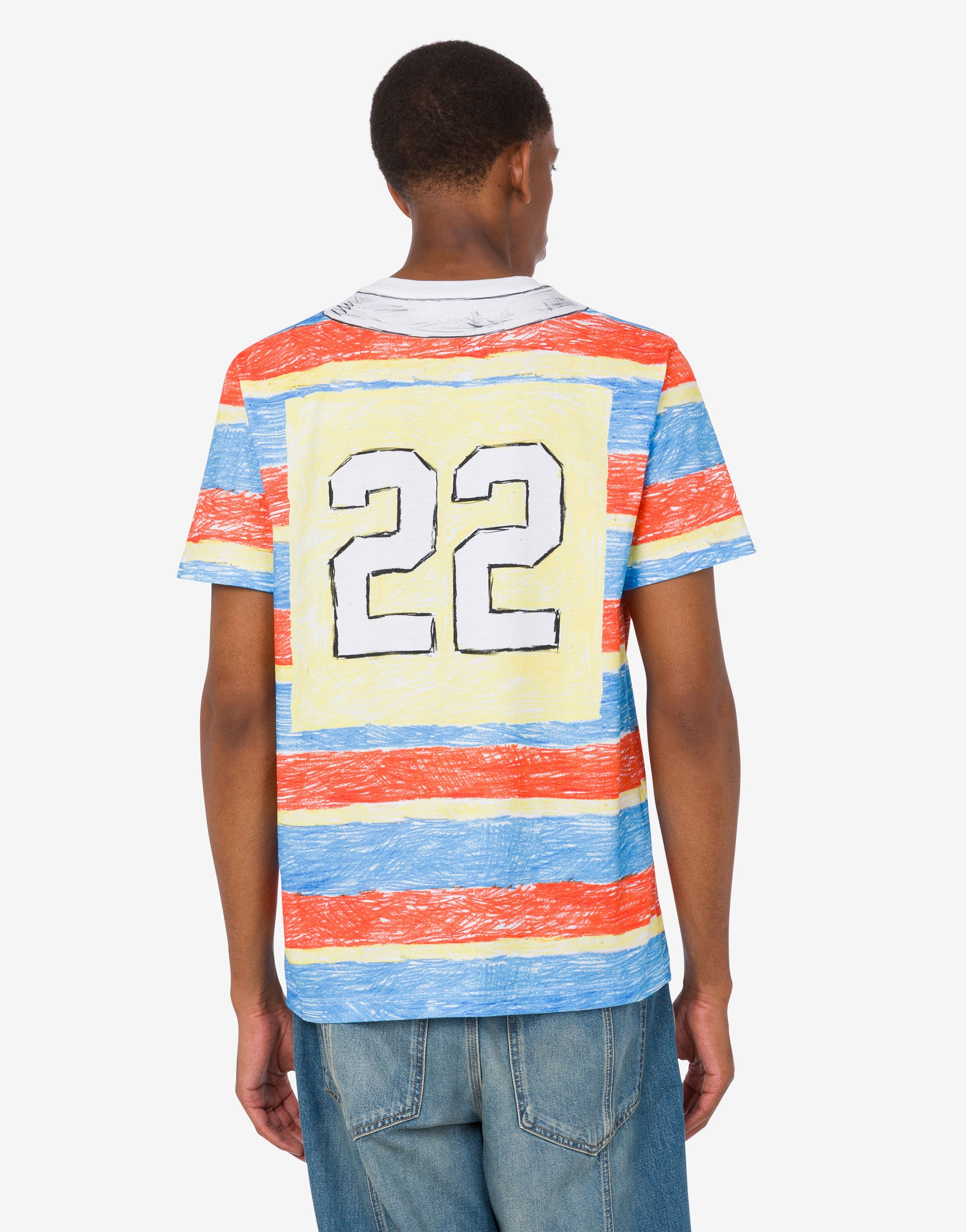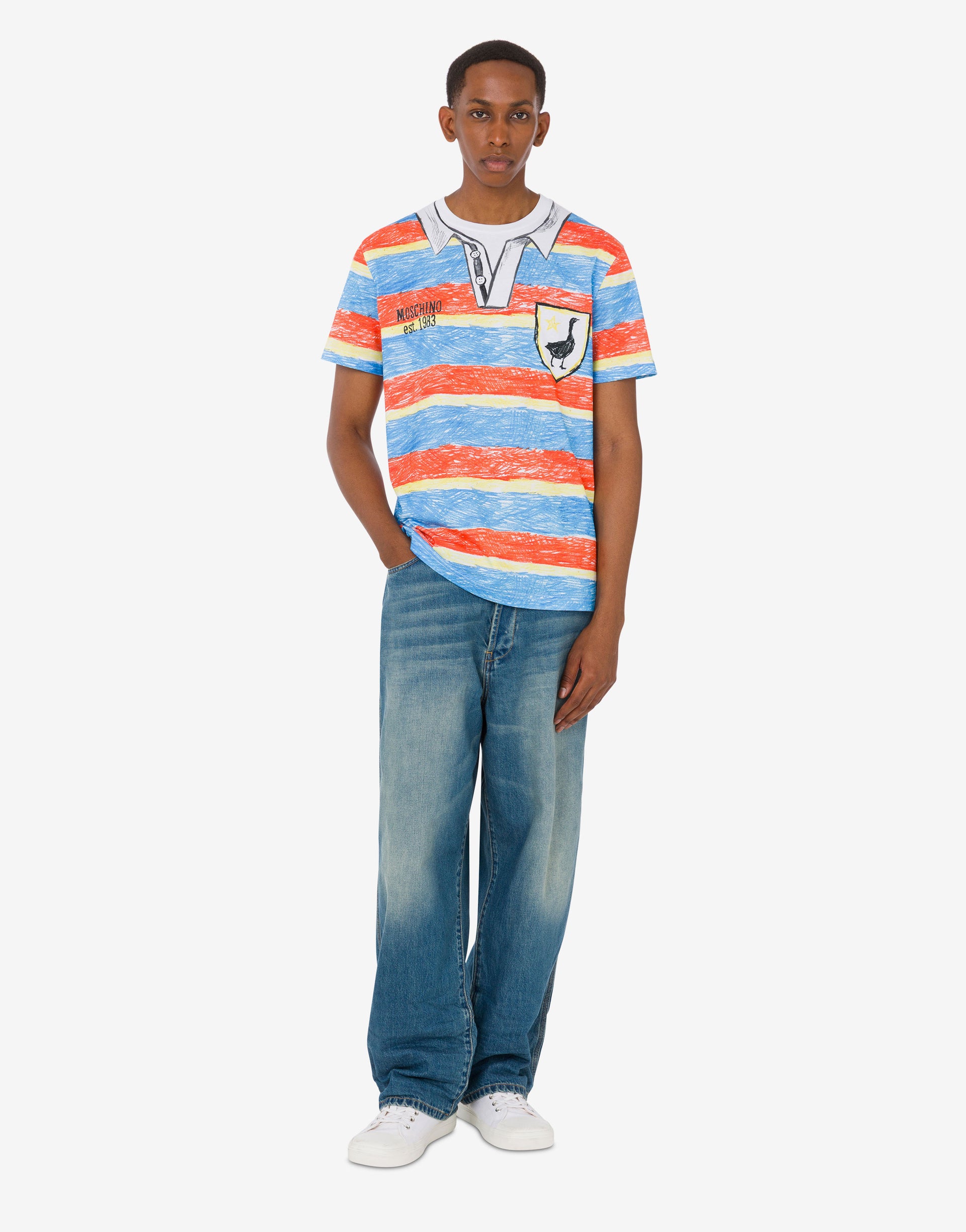 2026春夏系列推出有机棉针织T恤,饰有立体错视效果的运动马球印花。