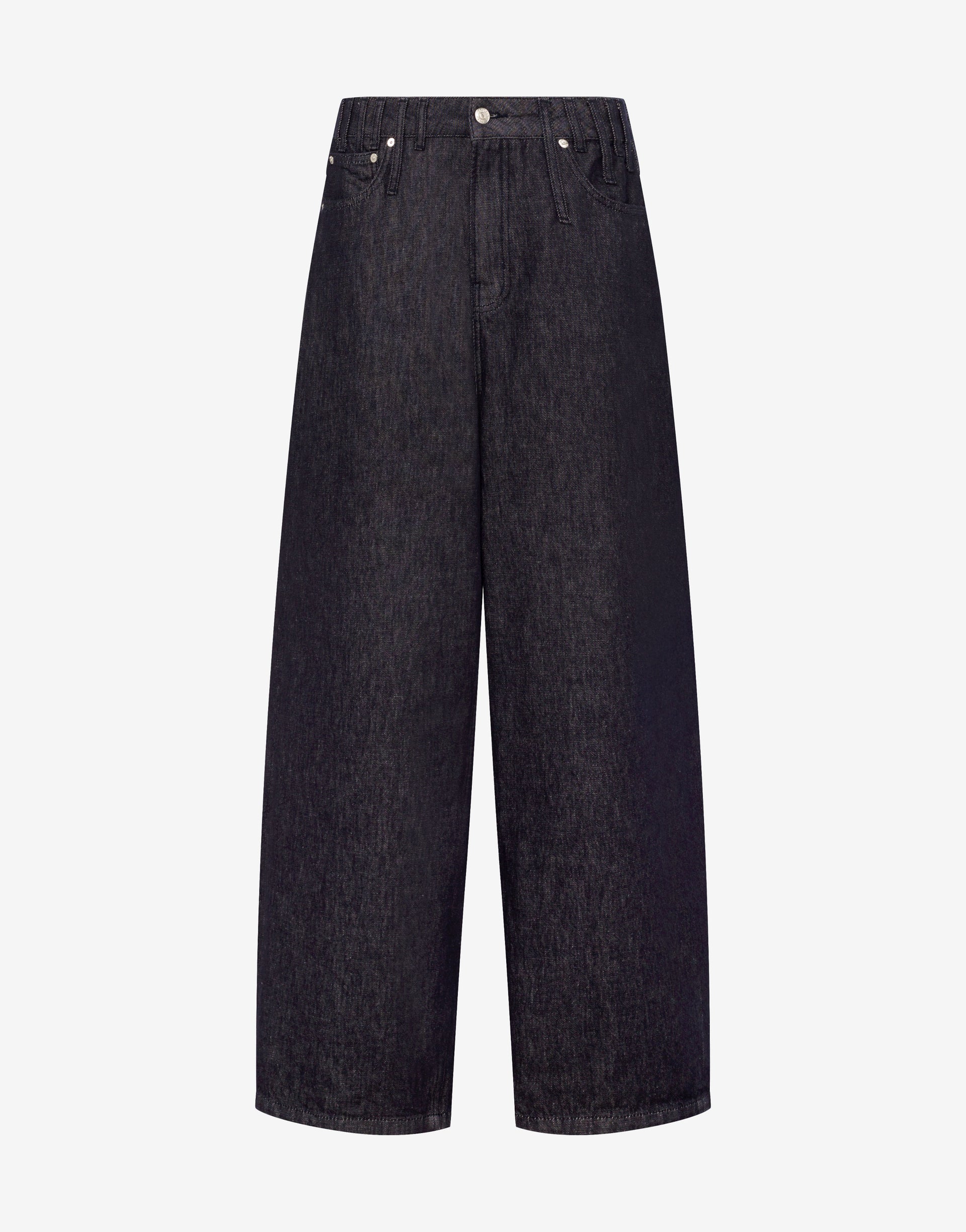 2025 年秋冬系列推出了五袋裤,采用结实的棉质牛仔布制成,腰部有不同长度的环扣。